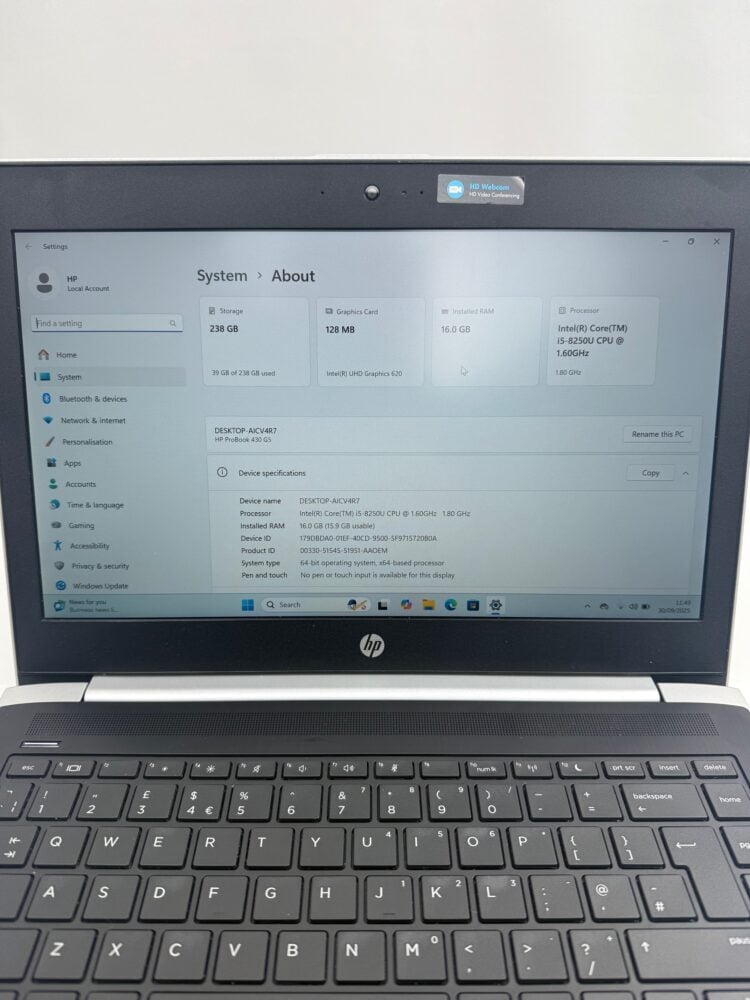 HP ProBook 430 G5 14″ i5 8th gen SSD 256GB RAM 16GB Laptop 13032
