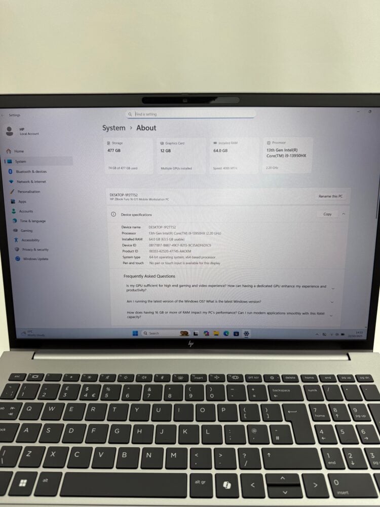 HP Zbook 16 Fury G11 16″ i9 SSD 512GB RAM 64GB RTX 3500 ADA Workstation Warranty Laptop SKU13058